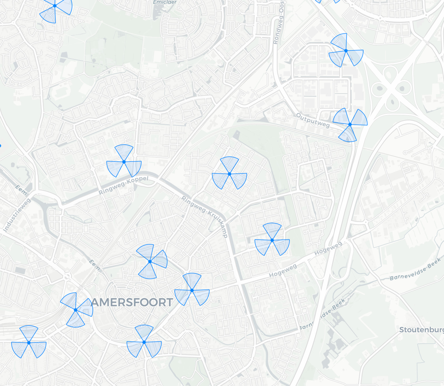 De dekking is van zoveel zaken afhankelijk. Niet alleen de richting, hoogte, tilt en het uitgezonden vermogen. Maar ook bebouwing, bos, water, weer, etc.
